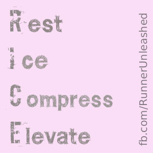 - Rest, Ice, Compress,Elevate!!!! I talk about this ALL the time for treatment to all running injuries. It is very important and VERY helpful in the aid of recovery. Make sure you rest your foot enough,wrap an ace bandage tight around your heel with an ice pack, and make sure to elevate it about your heart for the blood to flow. Leave this for at least 20 minutes after running.