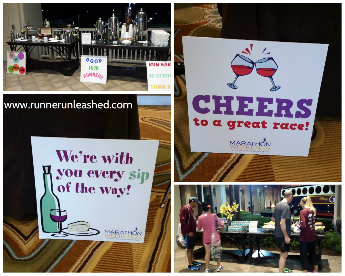 Bonnet Creek also offers carb loading pasta dinner for runners. A few options already prepared and SUPER delicious! My husband and I ate them and oh so yummy..and healthy!