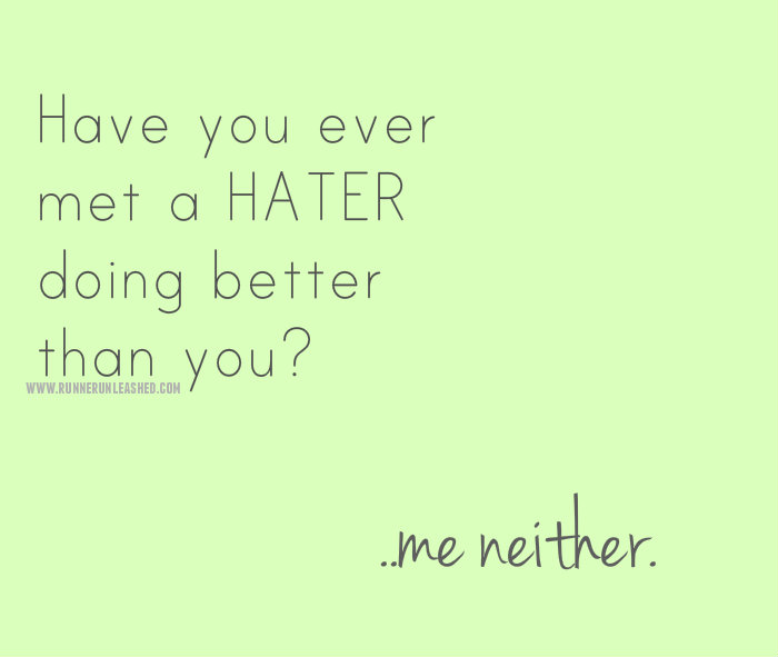 Don’t compete with anyone but yourself. Try to be better than you, do it for YOU. Make sure that you set your goals for the right reasons. Be whatever the hell you want to be, so long as it makes YOU HAPPY. Ignore the negative feed backs of “You can’t do it” “You are too big” “You are too skinny” “You aren’t strong enough” The way I see it….those are the people that know you will succeed and are scared of it. They are the ones that wished they reached or chased their goals. Those are the people with hate and jealousy and don’t have the courage you do to chase after a goal.
