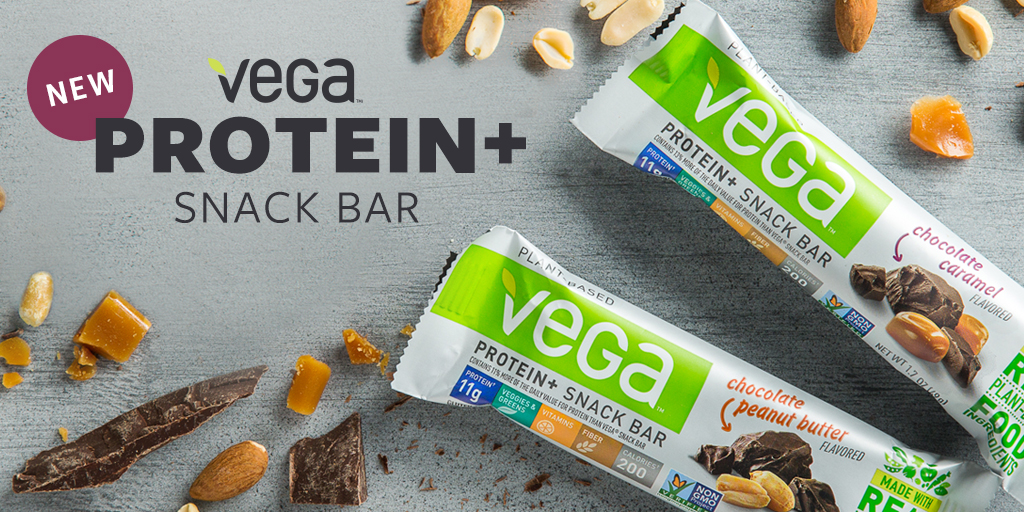 Vega Protein+Snack Barย is PACKED with everything you need to fight off hunger until your next meal. It is Non-GMO project certified, gluten-free, and certified vegan. It comes in 2 flavors: Chocolate caramel, and chocolate peanut butter.